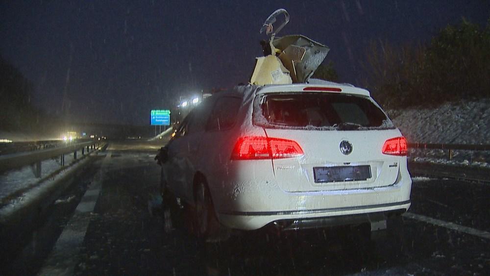 Snimci sa mesta nesreće prikazuju potpuno razlupani beli pasat sa razvaljenim krovom.