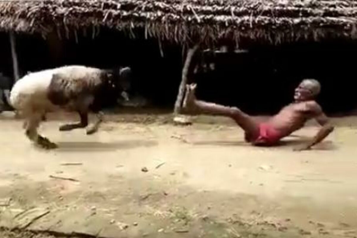 Deluje da ovaj deka namerno izaziva ovna da ga napadne, a životinja to i čini.