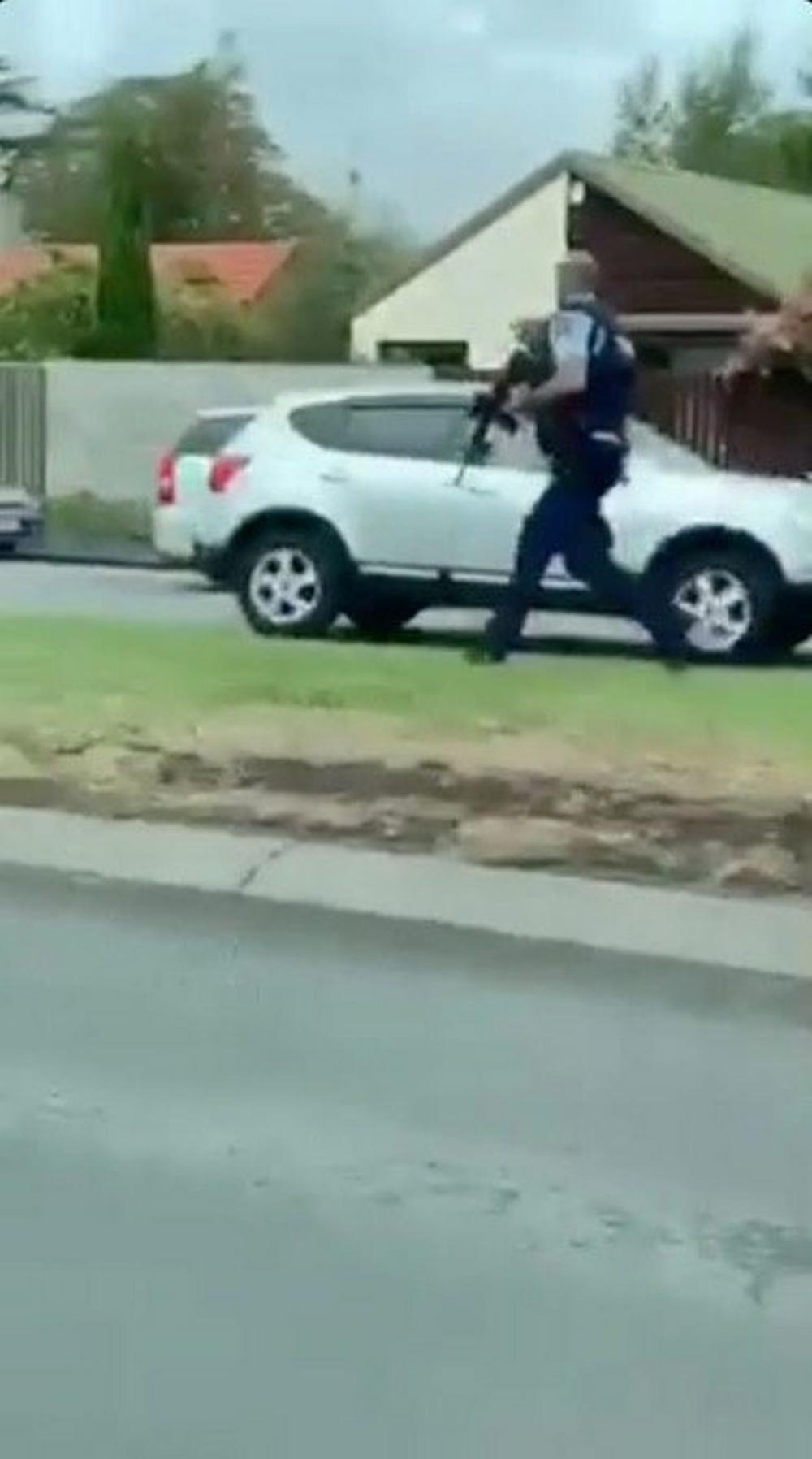 Snimak je napravljen očigledno preko kamere koju je nosio na svojoj glavi. On pokazuje muškarca kako se u borbenoj vojnoj opremi vozi do džamije Al Nur u centru Krajstčerča.