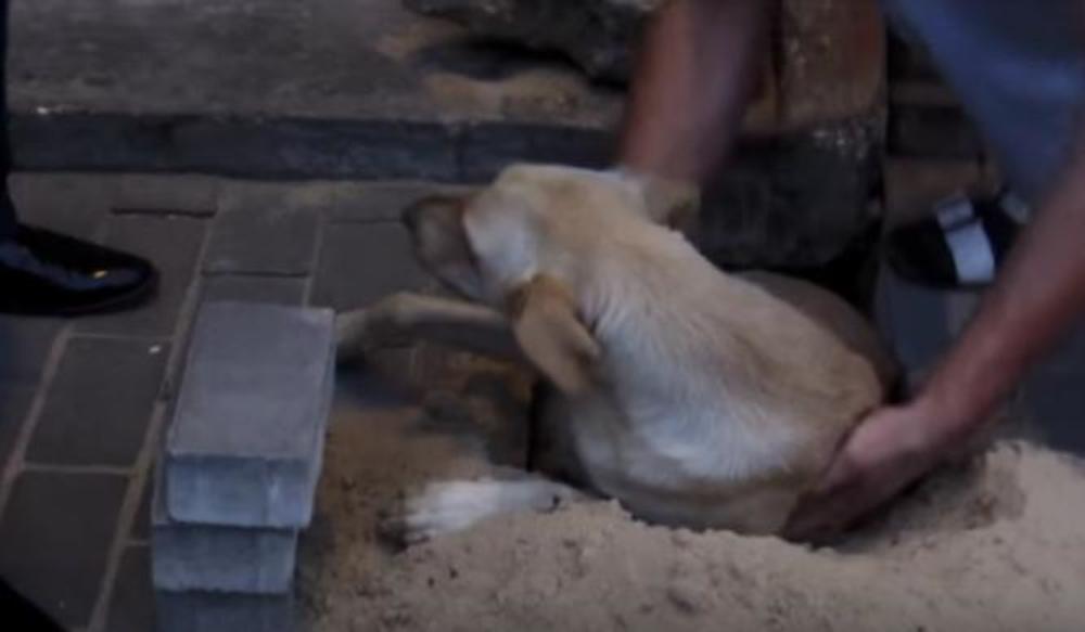 Sve se to događalo u ruskom gradu Voronezhu gde su radnici nedelju dana ranije postavljali deo pločnika. Verovatno je to i razlog zašto je pas završio tamo gde jeste, iako je cela priča poprilično neobična i čini se neverovatnom da je pas ostao ispod stepenica zgrade.