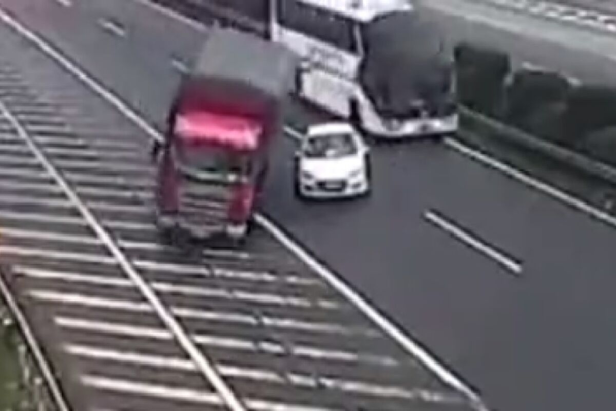Drugi kamion uspeo je da se zaustavi u poslednjem trenutku, a vozač automobila nakon toga izašao je s auto-puta.