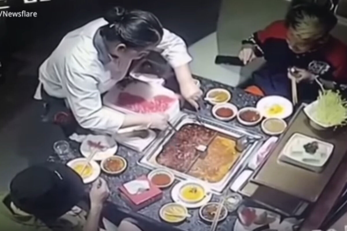 Sve se desilo u restoranu Haidilao u Kunmingu (Kina) u kojem gosti sede za stolom na kojem se u isto vreme sprema njihova večera. Dvojica gostiju dugo će pamtiti svoju večera na koju su otišli prošli utorak, kao i nesrećna konobarica.