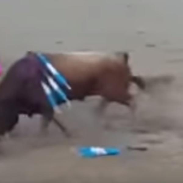 Video pokazuje kako je gomila vrištala od užasa dok bik baca čoveka u vazduh