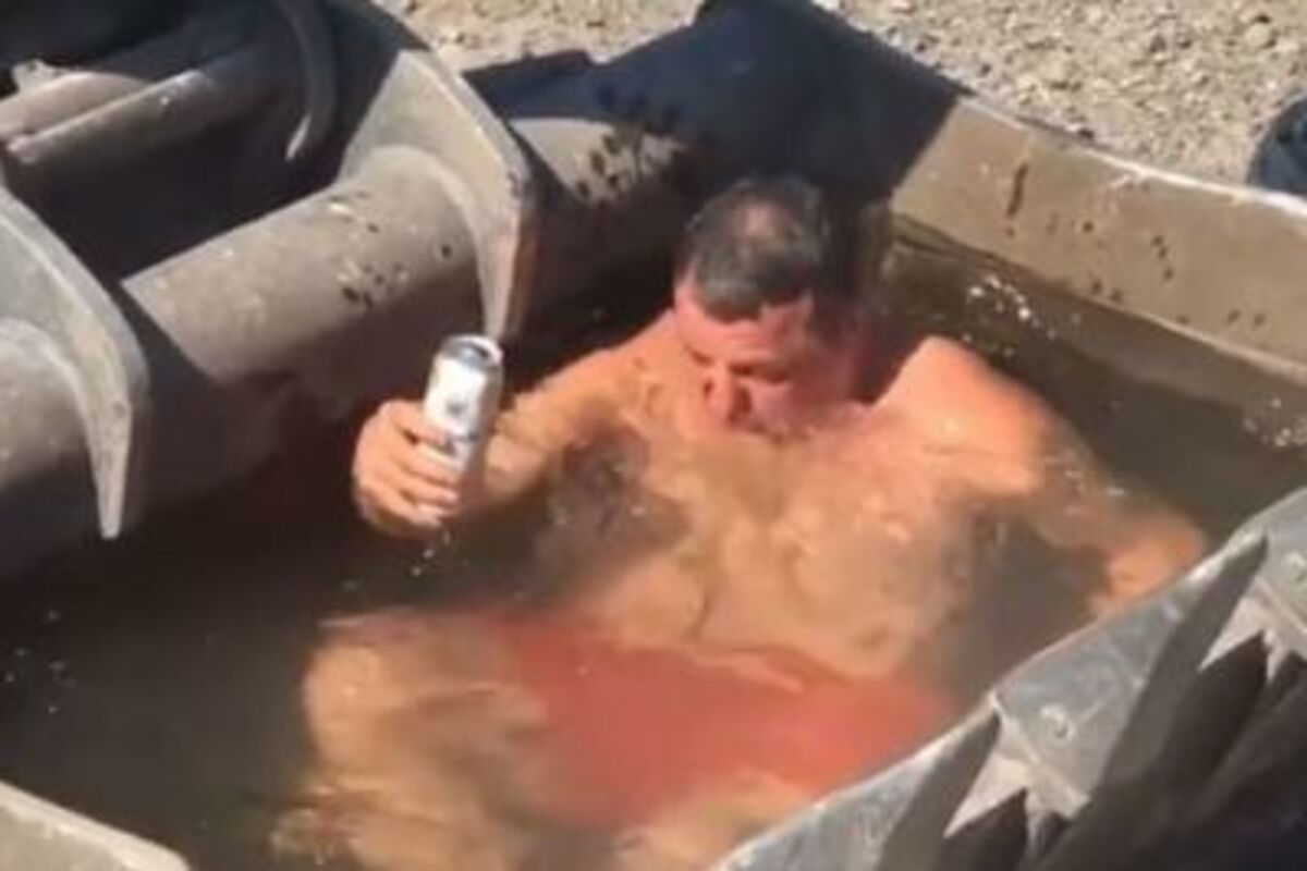 Jedan muškarac, čiji je snimak objavljen na Fejsbuku, odlučio je da se brčne u korpi bagera koja je napunjena vodom.
