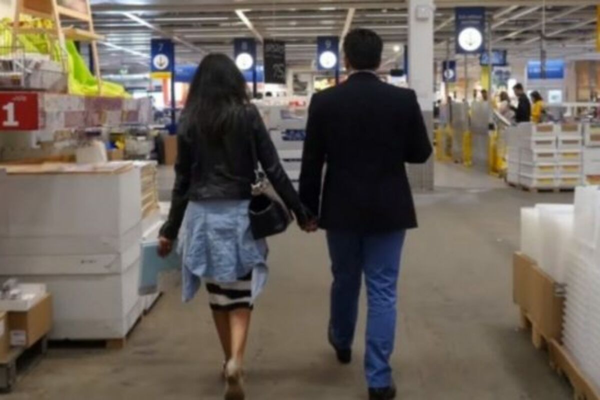 Dvoje mladih je došlo u tržni centar, kako bi pogledali stvari za kuću. Kada su stigli, radnici su izvodili ples uz muziku.