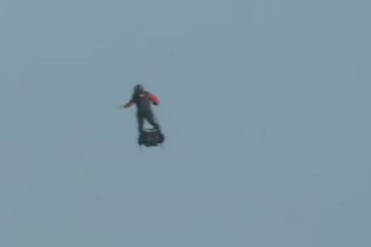 Francuz Frenki Zapata, nazvan "leteći čovek" je pokušao da preleti Lamanš na svojoj napravi, letećoj platformi