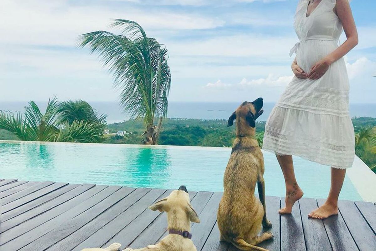 - Naša obitelj se širi baš kao i moj trbuh. Zahvalna sam jer nas je svemir tako brzo blagoslovio ovim božanstvenim darom - napisala je uz fotografiju na kojoj pozira s trudničkim trbuščićem. Društvo su joj pravila njena dva psa.
