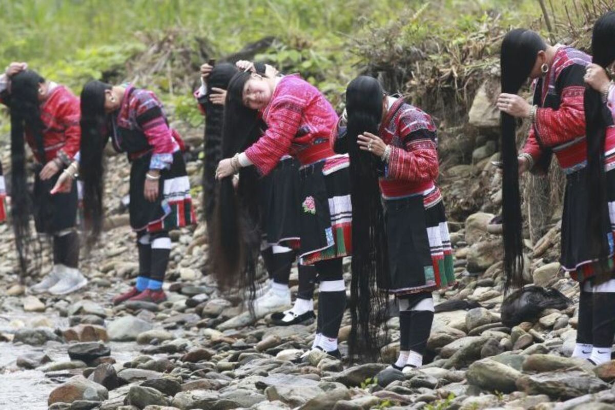Žene u oblasti Guangsi na jugu Kine tradicionalno se okupljaju ma godišnjem festivalu u slavu svojih dugih kosa, koji se održava na reci nedaleko od sela Huangluo Jao.