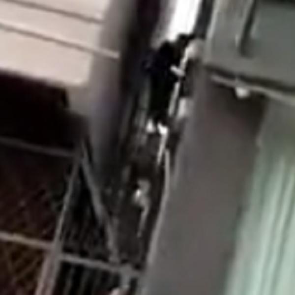 Neverovatna scena je usledila: čovek koji juri osumnjičenog shvata da ne može ništa da uradi i odluči da sedne na krov dok se osumnjičeni bori sa psima. Uljez očajnički pokušava da se bori sa životinjama pomoću plastične cevi, ali psi nastavljaju da napadaju dok viče u pomoć.