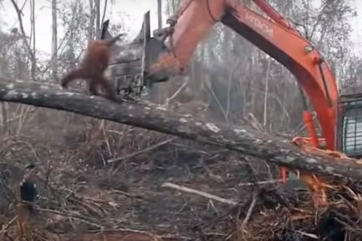 ORANGUTAN SE BORI PROTIV BAGERA KOJI RUŠI NJEGOV DOM: Ovaj snimak prikazuje sve ono NAJGORE u vezi čovečanstva