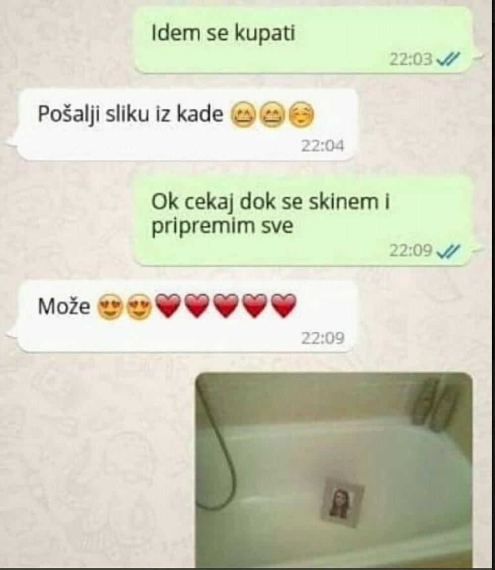 Jedna devojka je rešila da stavi svoju sliku u kadu i to doslovno i pošalje je momku koji joj je tražio fotografiju iz kade.