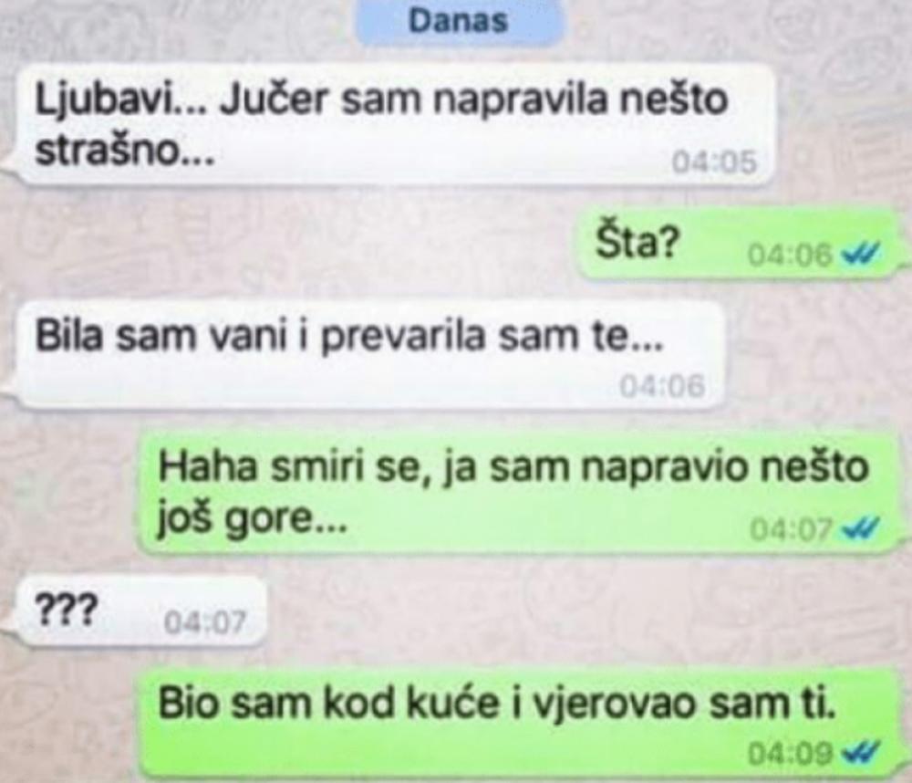 PRIZNALA SAM MU DA SAM GA PREVARILA, ALI KAD MI JE POSLAO OVU ZADNJU PORUKU SUZE SU MI KRENULE! Pala sam MRTVA