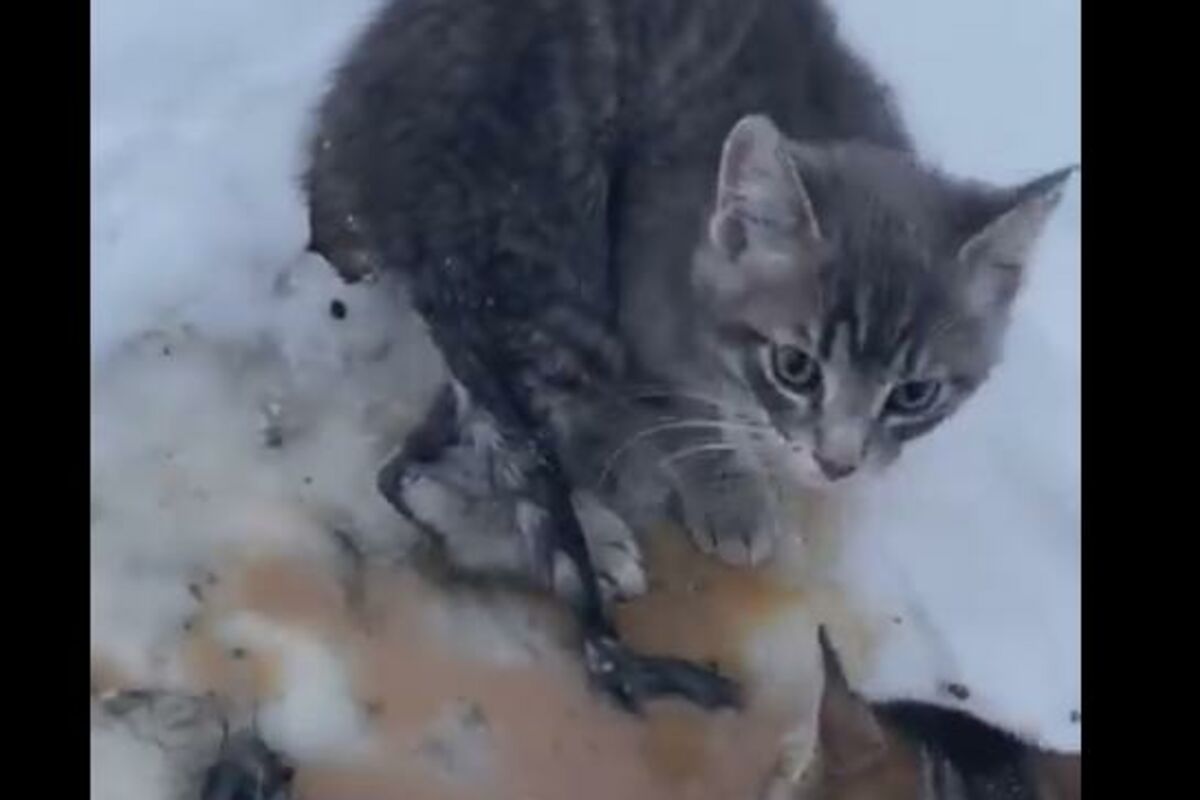 Dok je proveravao naftnu bušotinu, primetio je kako mačići nepomično stoje zarobljeni u snegu i ledu
