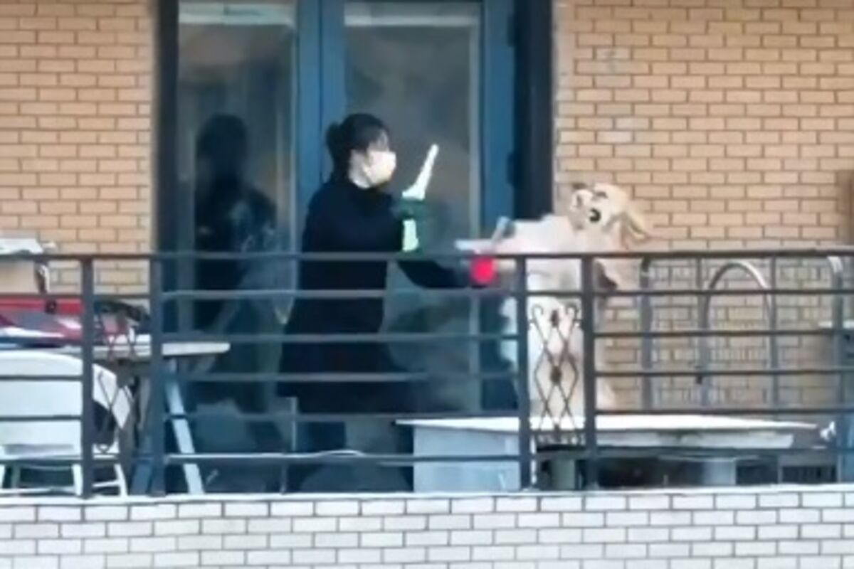 Na Tviteru se pojavio video snimak gde vlasnica sa svojim psom, zlatnim retriverom, na terasi višespratnice vežba kung fu.