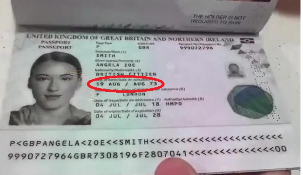 Navodi se da je fikcionalna vlasnica pasoša rođena 19. avgusta 1973. - što znači da bi joj ove godine bilo 47 godina. Ali fotografija koju su iskoristili u pasošu je vrlo mlade žene, nazvane Anđela Zoi Smit, za koju se misli da je izmišljena osoba.