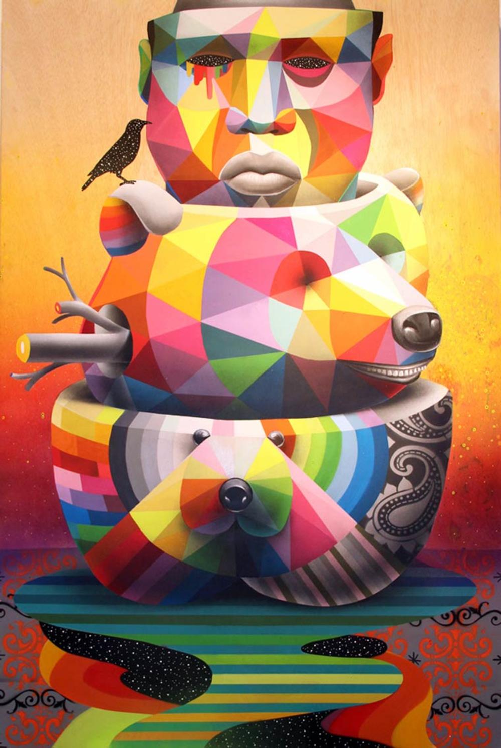 Pored toga, on je radio i dva zanimljiva projkta - oslikana crkva u Maroku i istorijska crkva koja je pretvorena u skejt park. Okuda je poznat po kombinaciji geometrijskih oblika, klasičnih skulptura i moderne ulične umetnosti.