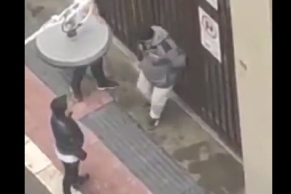 Muškarac u jednom trenutku trese metalnu kapiju, a izliv besa pokušava da smiri policija.