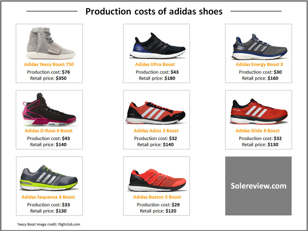 Istraživanje koje je obuhvatilo modele Najkija, Adidasa i Asicsa donosi procenu za brojne modele ove tri kompanije.foto: Solareview printscreenOni su računali troškove u fabrici (materijal, radna snaga), potom i prevoz brodom (dolar po paru), osiguranje (0.30 centi), ali i američku carinu (3 dolara).