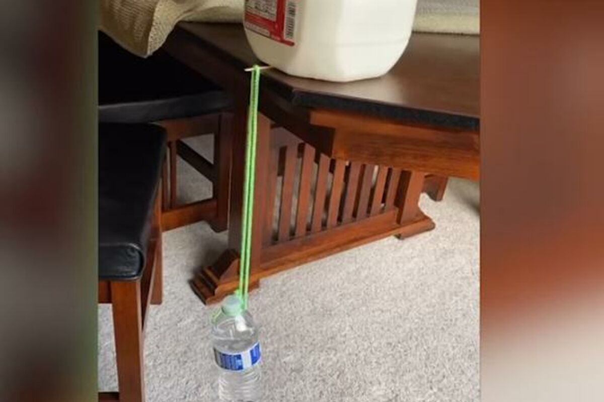 Potrebno vam je tri čačkalice, flaša vode i kanap kojim ćete vezati flašu za grlić. Da ne objašnjavamo, samo pogledajte i biće vam jasno: