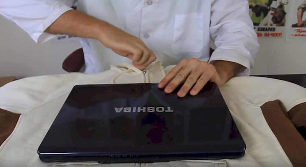 Navucite duks preko kompjutera, zavucite uglove i navucite kapuljaču preko.
