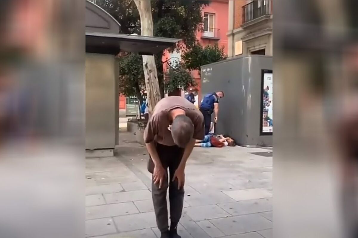 U prvom planu jedan čovek pleše, izvodi “moonwalk”, u drugom deluje kao da je žena pala na zemlju, a muškarac joj ukazuje pomoć, ali onda dolazi policija koja udara i sklanja muškarca za kog tek onda skapiramo da očigledno napada nesrećnu ženu.
