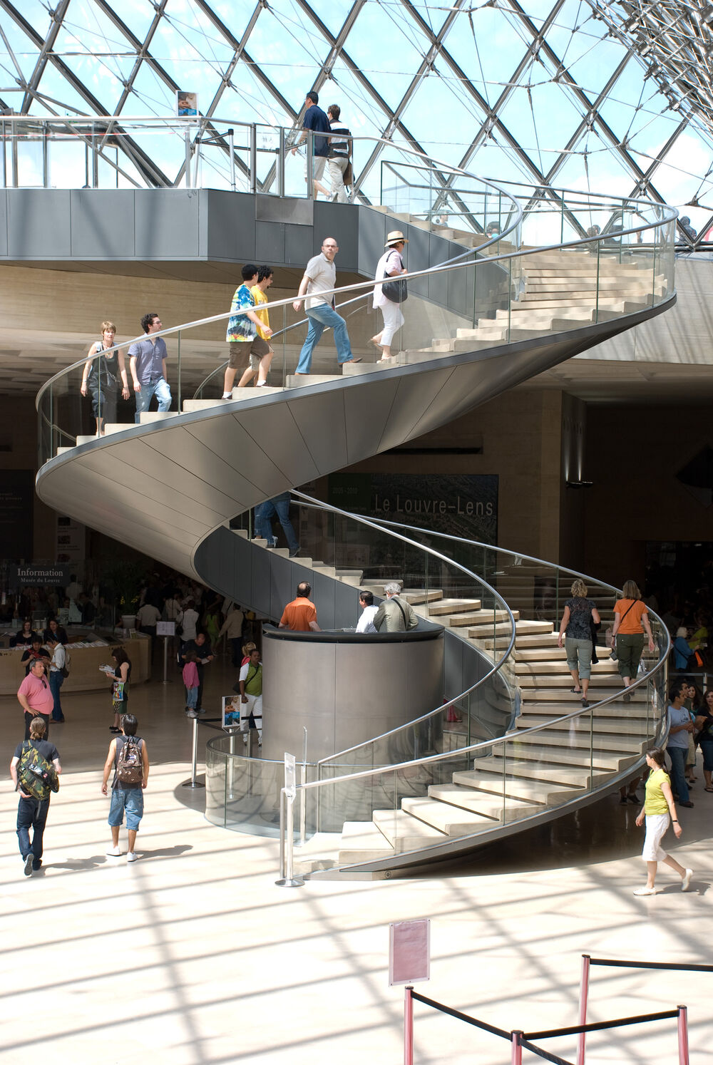 Kada ste već u Parizu morate da posetite kultnu piramidu u Luvru. Njen otvoreni lift je genijalno uklopljen u spiralno stepenište.