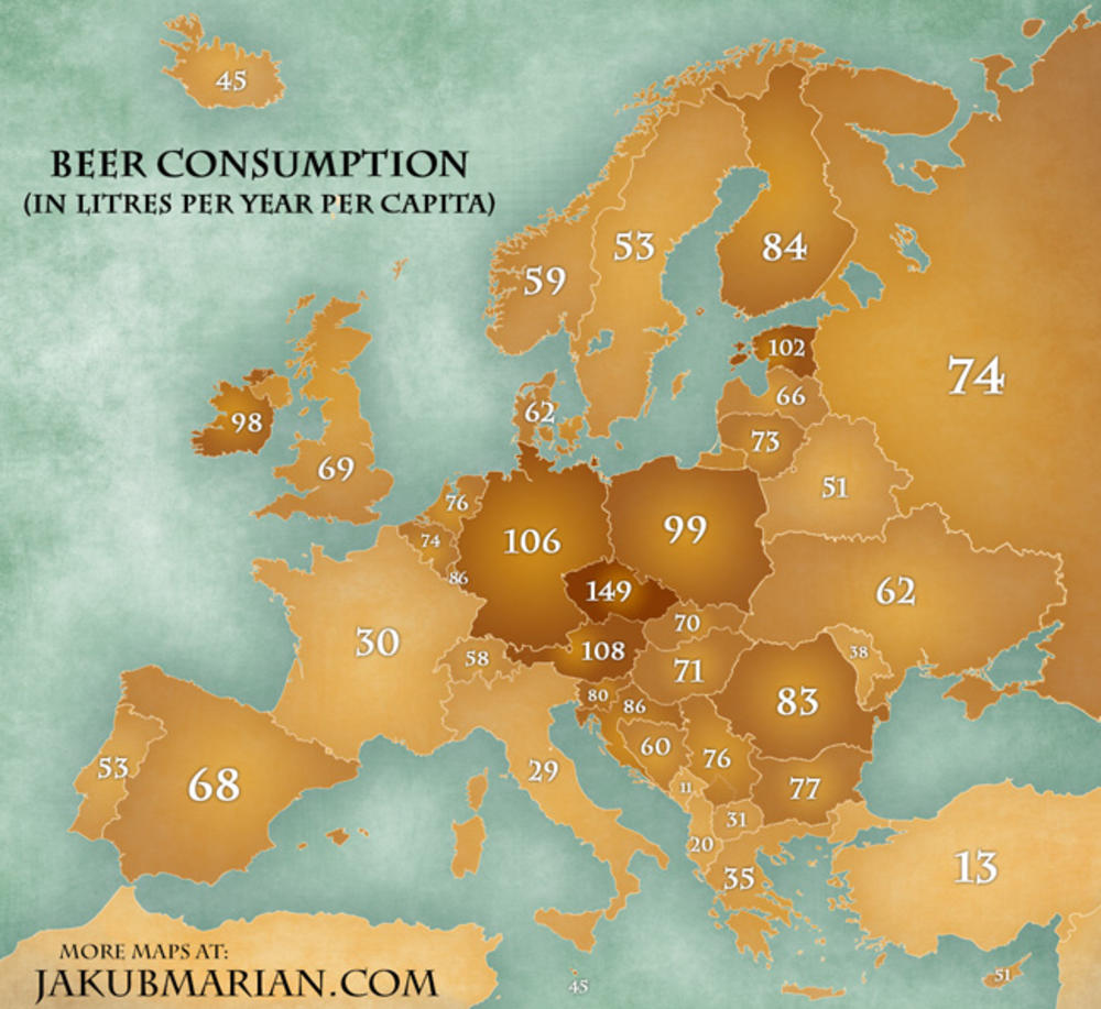 I ne samo da prave najboje pivo na svetu, nego ga i piju najviše na svetu! Tu šiju sve ostale nacije! Zvuči neverovatno, ali prosečan Čeh troši 40 litara piva godišnje više od prosečnog Nemca (čija zemlja, inače, proizvodi pet puta više tog pića). To je skoro celo bure!