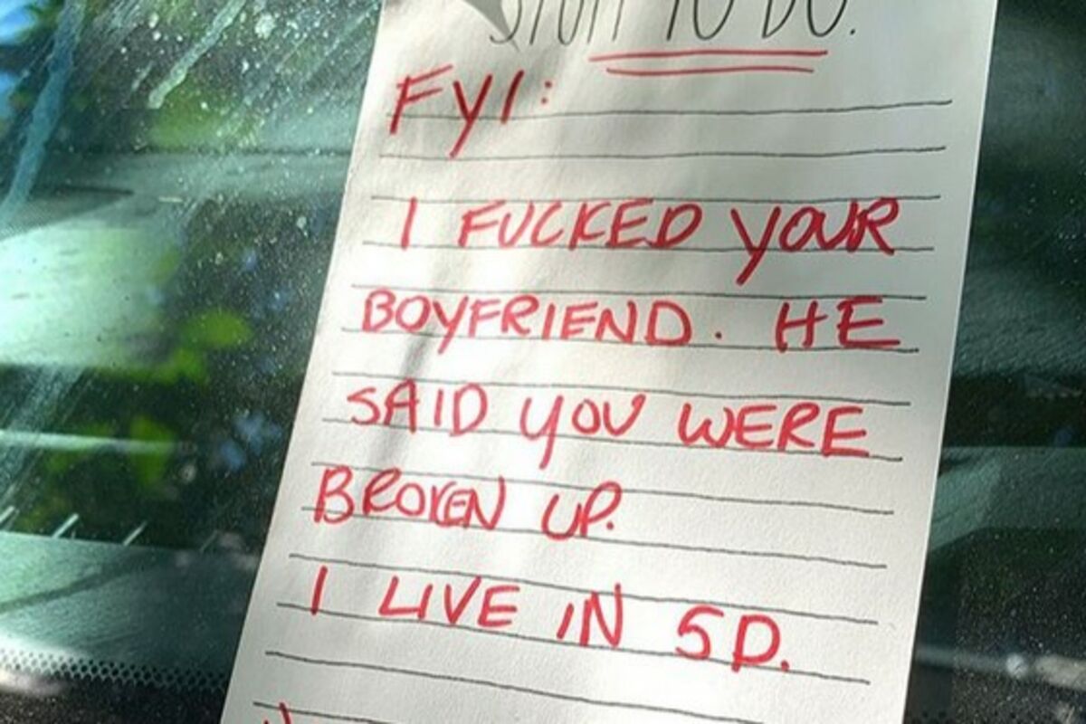 “Imala sam seks sa tvojim dečkom. Rekao mi je da ste raskinuli. Živim u stanu 5D. 1. Operi kola 2. Šutni ga. (ne moraš tim redosledom)”, posavetovala je komšinica ženu sa čijim je dečkom spavala.