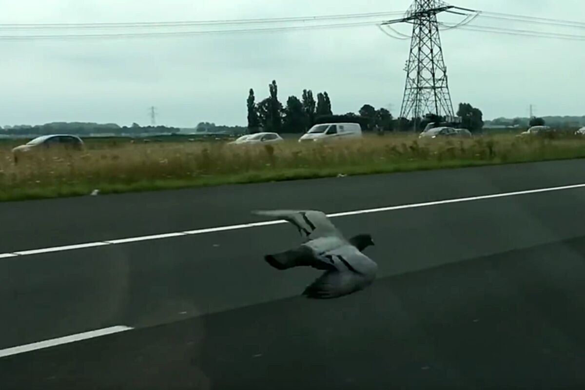 Jedan golub snimljen je na autoputu, od Amsterdama do Utrehta, u Holandiji kako sumanuto brzo leti između automobila!