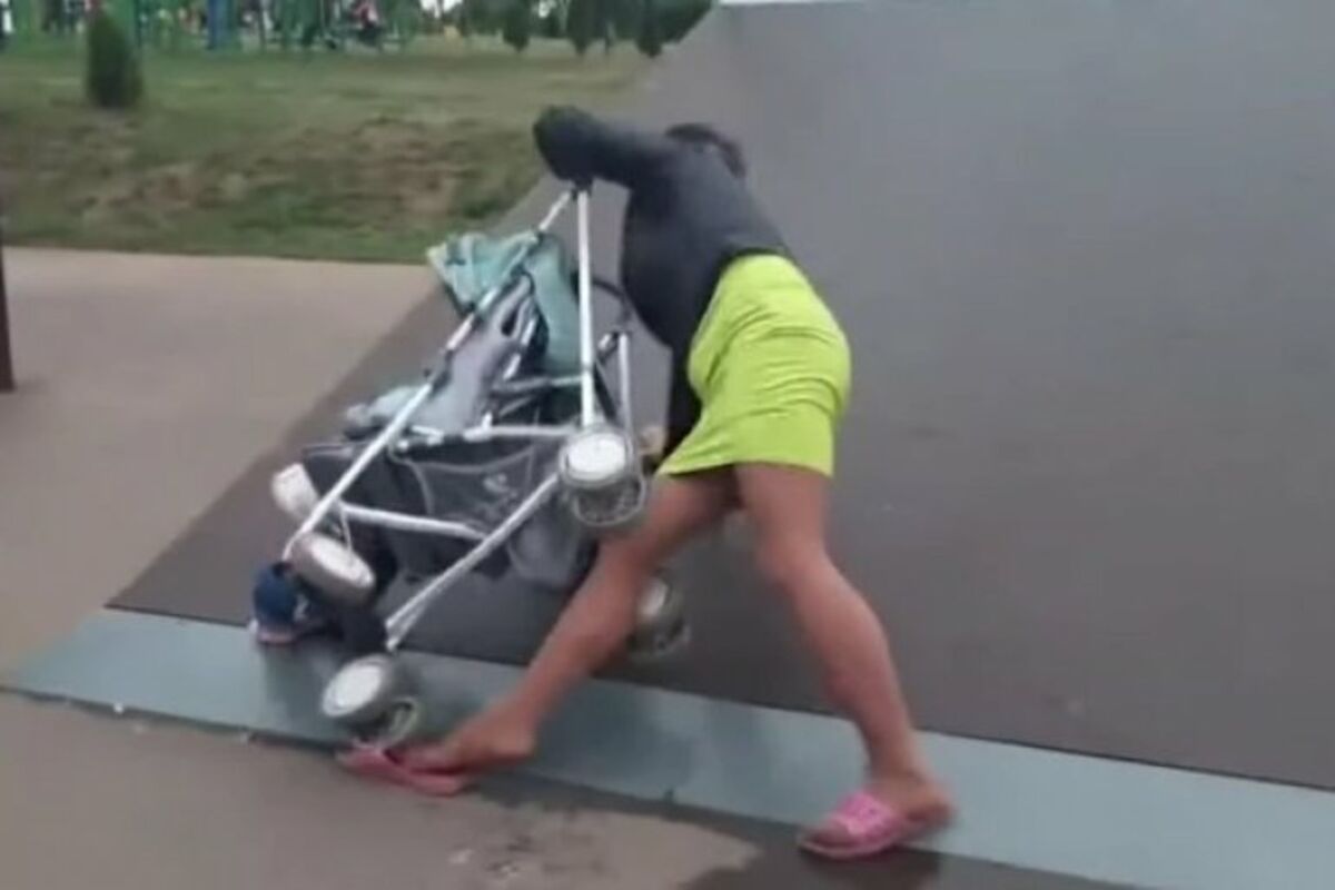 Na početku video snimka majka ubrzava i zabija se u podnožje rampe, a zbog zaleta kolica su se prevrnula i devojčica je gotovo ispala da beton.