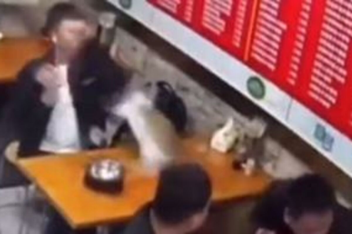 Mačka lutalica koja je pala sa plafona u restoranu uplašila je restorane u kineskom Šangaju 15. oktobra.