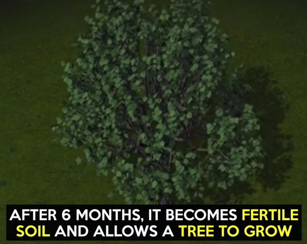 Nakon šest meseci zemljište postaje plodno i omogućava rast drveća, pa bi se moglo reći da tako "život posle smrti" dobija pravo značanje.