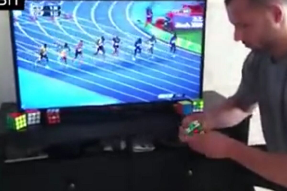 Ovaj genijalac je upalio TV i trku kada je Bolt trčao za medalju, a u isto vreme je krenuo da "slaže" Rubikovu kocku.