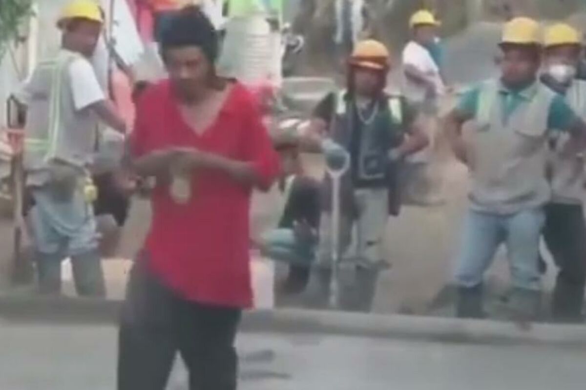 Radnici su u jednom trenutku stajali bespomoćno i gledali kako čovek nastavlja da šeta po svežem malteru.