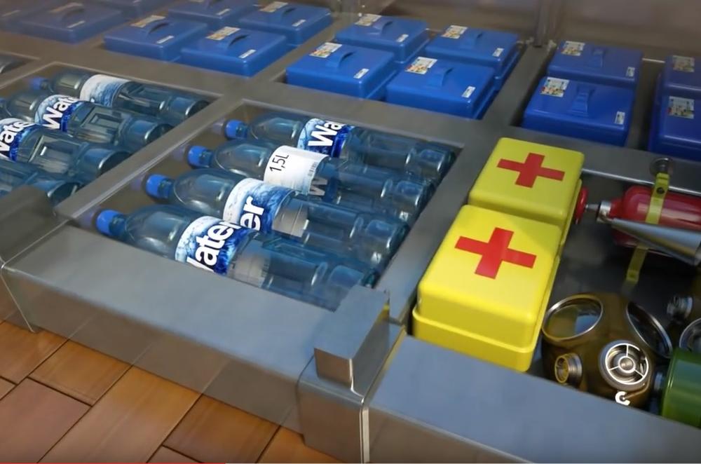 Sa druge strane, unutar kovčega postoji pribor za prvu pomoć, gas-masku i zalihe vode. Oni bi trebalo da sačuvaju žrtvu zemljotresa da dolaska spasilaca.