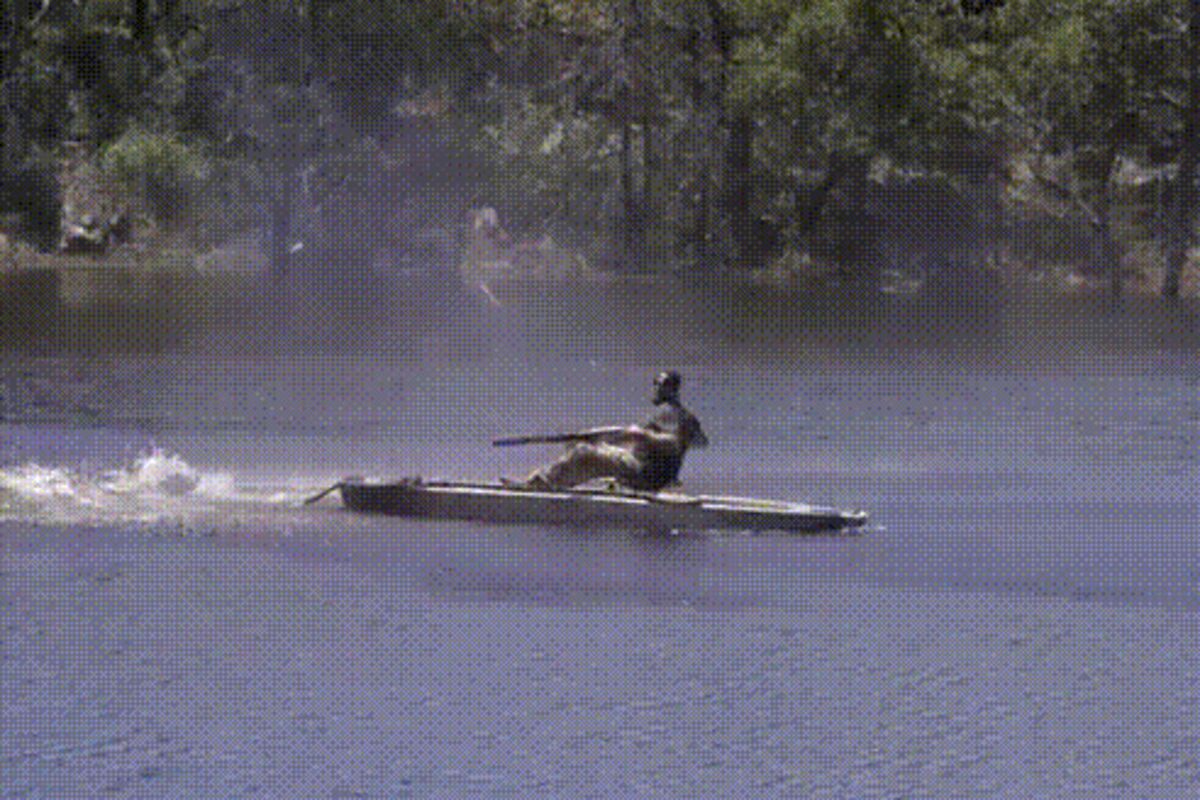 Na internetu se pojavio snimak koji pokazuje Amerikanca u čamcu koji "vesla" pomoću sačmare, pucajući u vodu. S obzirom na njihovu ljubav prema oružju, moglo bi da se kaže da je ovo njihovo nacionalno obeležje u ovom sportu?