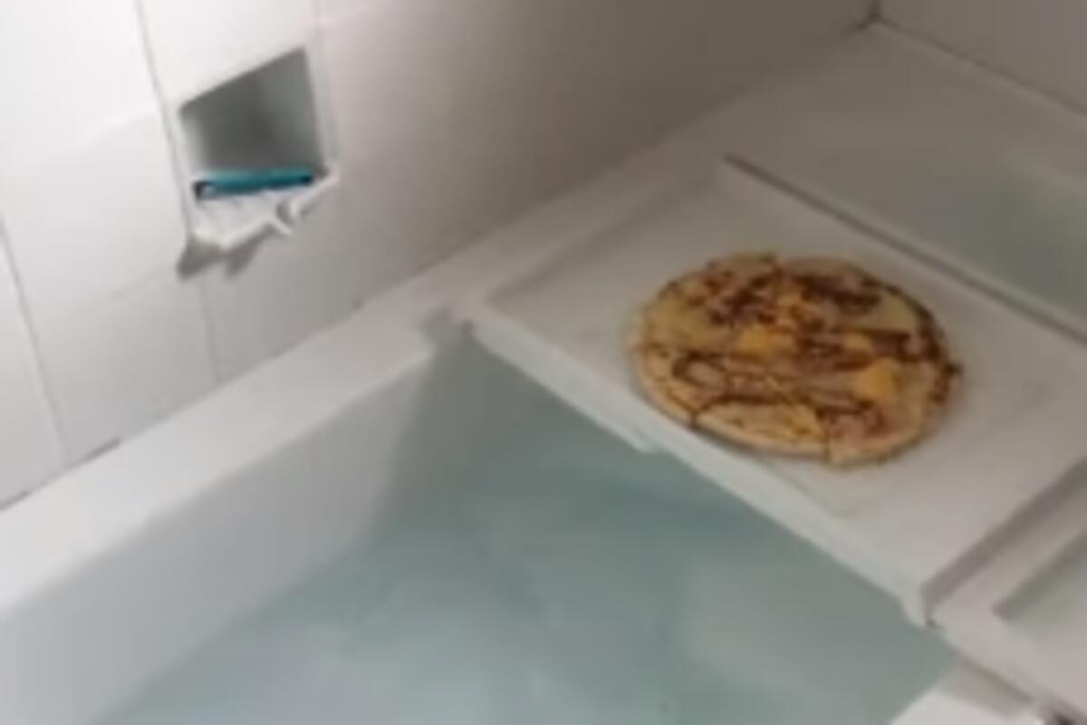 Urnebesan snimak koji se pojavio na TikToku prikazuje kako je jedna osoba nakon napornog dana pokušala da se opusti u kadi uz omiljeno jelo.