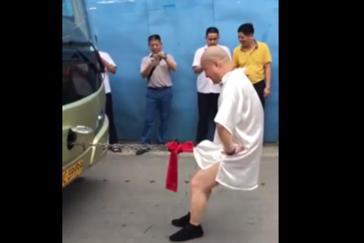 Muškarac je autobus i polni organ povezao sa metalnim lancem, a čini se da se nije ni oznojio prilikom ovog poduhvata.
