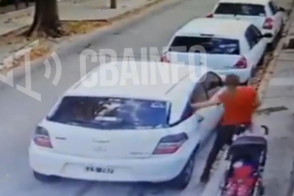 Beba je spavala u kolicima pored nje, a kada se oglasio alarm automobila, ona je mirno izašla iz vozila i odšetala sa detetom.