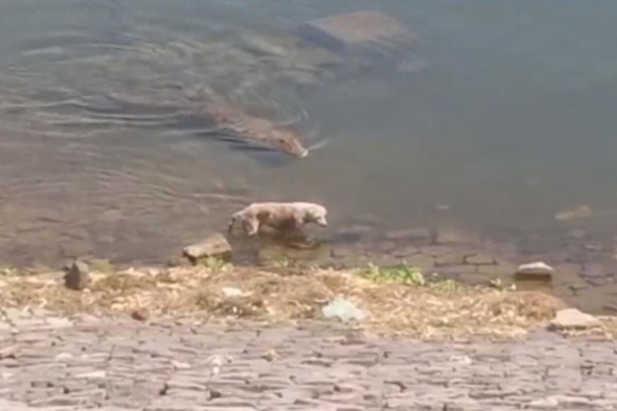 DŽINOVSKI KROKODIL JE UGLEDAO JADNOG PSA NA OBALI REKE: Užasna scena snimljena u Indiji (VIDEO)
