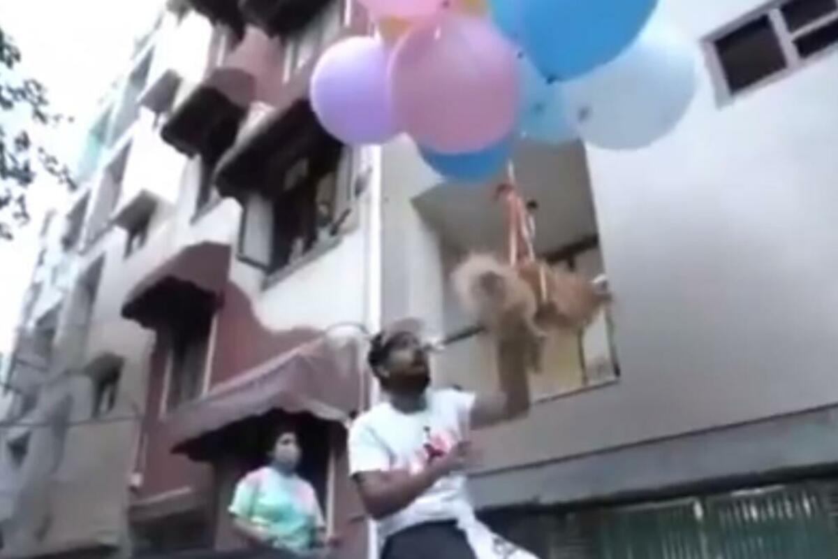 Gaurav Šarma je (32) je objavio snimak na kome se vidi kako kači balone za psa i pušta ga da poleti. Nekoliko sekundi kasnije, neko je sa balkona na drugom spratu uhvatio psa.