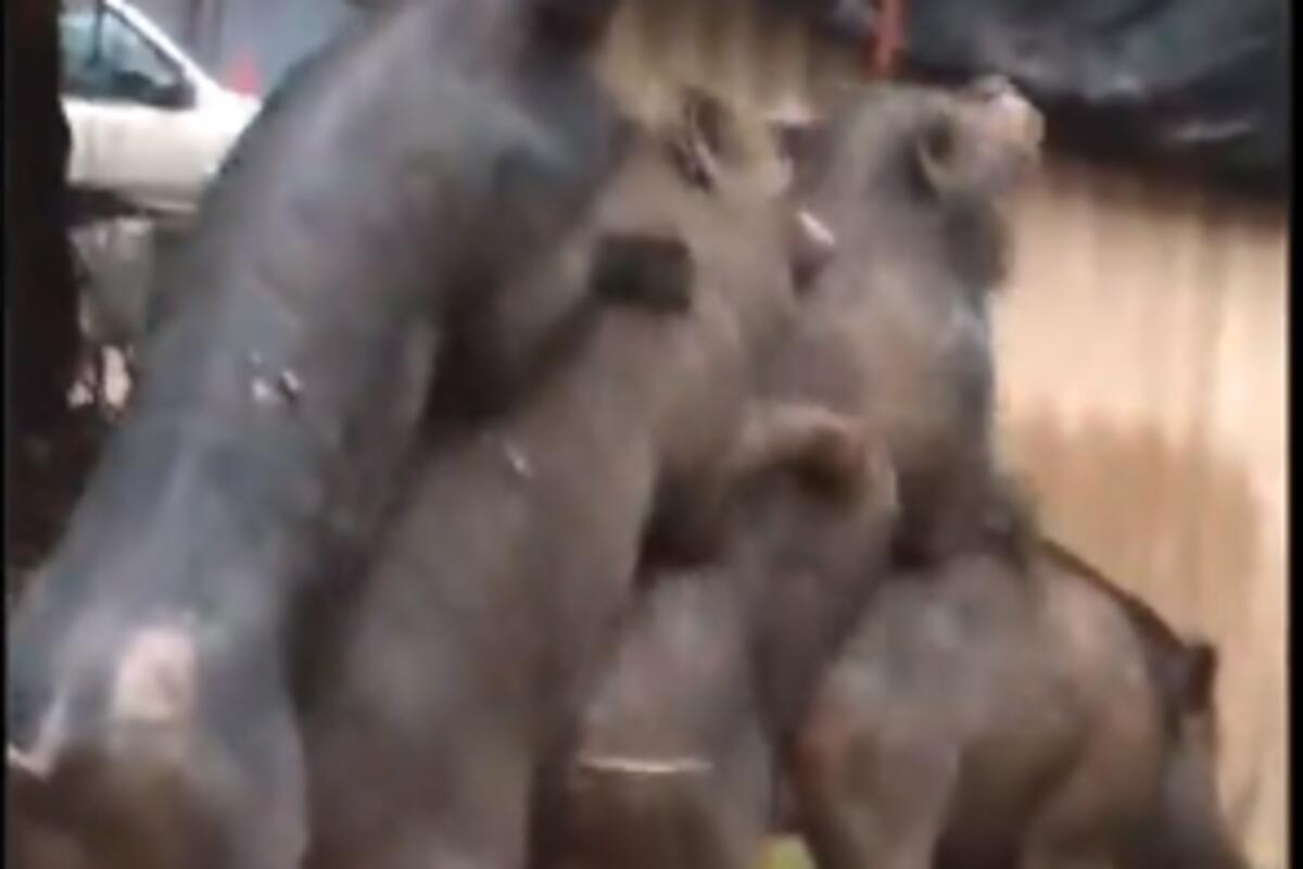 Ovim svinjama kao da ili nije bio dovoljan jedan partner ili gledaju šta drugi rade pa bi malo i oni ili ih je sama scena namamila da i oni krenu u akciju. Ko li će znati šta se to desilo u njihovim glavama.