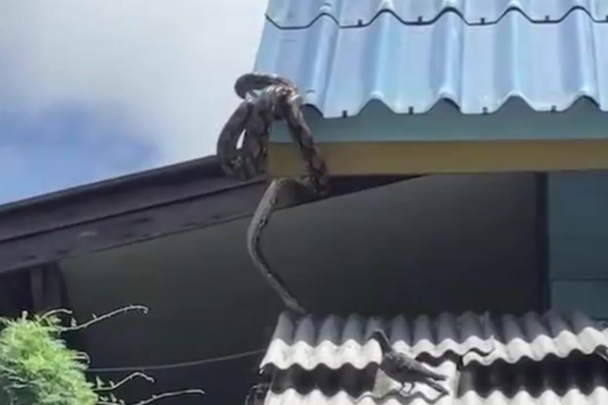 Piton je pao 20 metara sa krova u donji kanal dok je lovio goluba u centralnom Tajlandu.