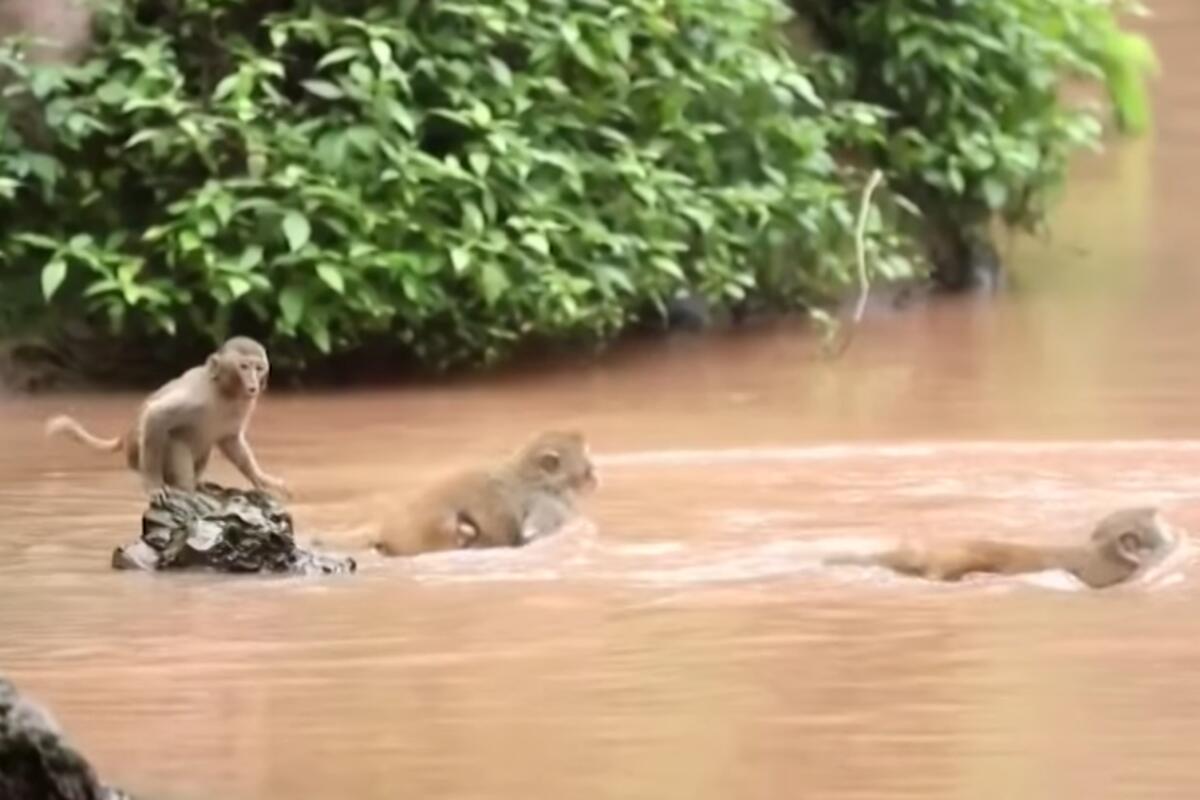 Stotine majmuna odlučilo je da zapliva, i to deluje kao da su se baš dogovorili. U pitanju je reka na jugozapadu Kine, u provincji Chongquing.