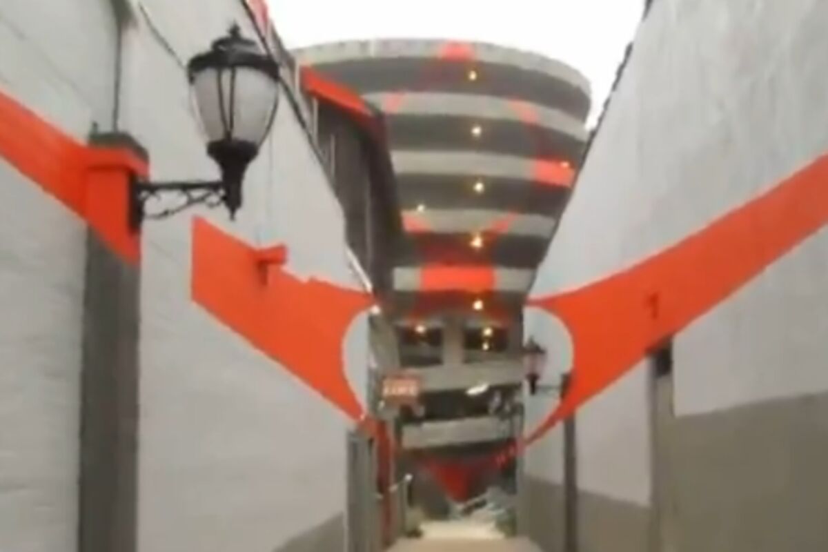 Video koji pokazuje građevinu od tridesetak metara u čudnim šarama zapravo je živa slika, optička iluzija.