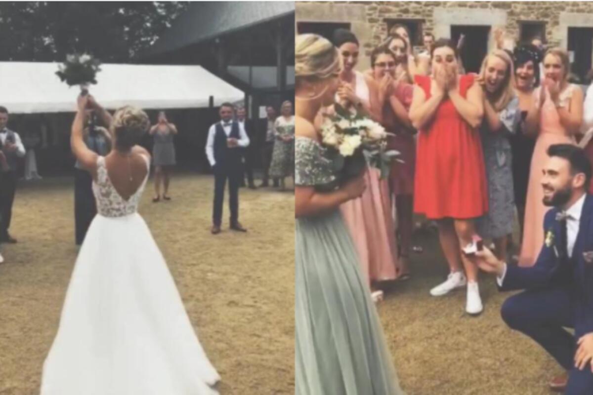 Međutim, umesto da ga baci natrag grupi žena koje su prisustvovale njenom venčanju, ona se okreće i daje ga jednoj devojci koja nije bila svesna šta se događa. Njen dečko zatim je potapšao po ramenu te je pitao hoće li se udati za njega.