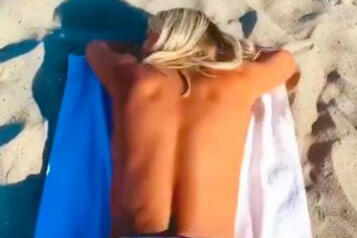 Nakon što se plavuša skinula samo u donji deo kupaćeg i legla da se sunča, pogodila je lopta.