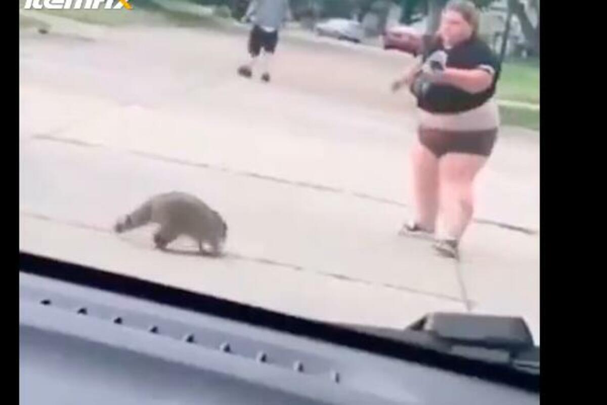 Kamere su zabeležile susret rakuna i jedne simpatične buce. Kao što vidite, devojka nije bila preterano hrabra, i čim je rakun pokazao znake agresije, dala se u beg.