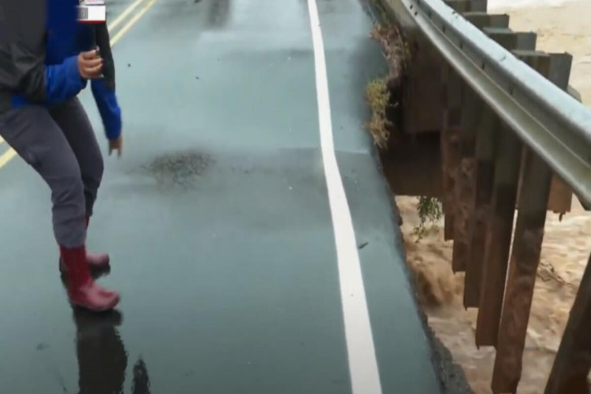 Novinarka iz Severne Karoline doživela je pravi šok tokom izveštavanja uživo, kada se most na kojem je stajala odjednom prepolovio na pola.
