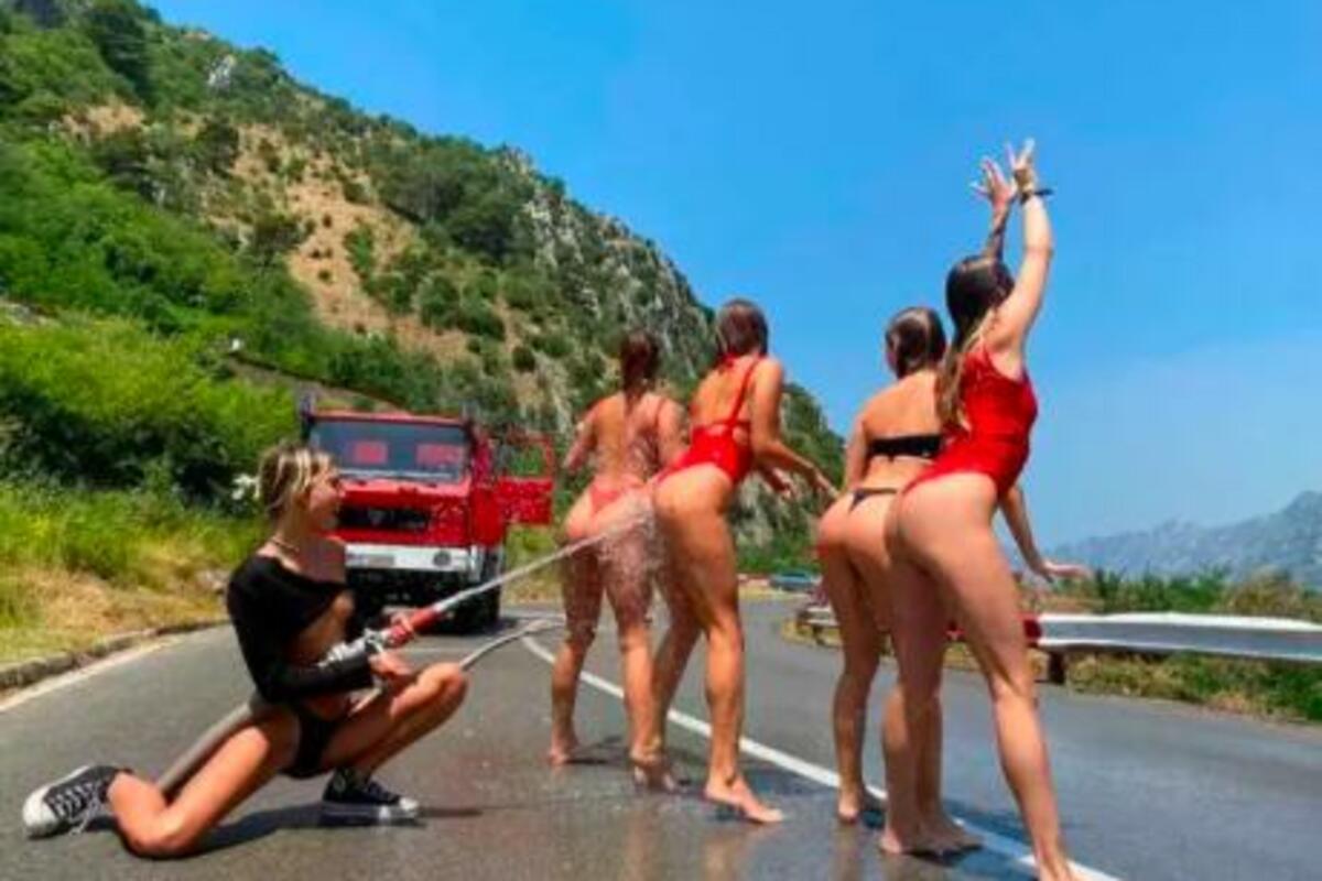 Sada su napravili skandal i u Crnoj Gori. Prvo su goli šetali Kotorom, a onda su goli snimljeni na Jadranskoj magistrali. Tada su od vatrogasaca uzeli crevo i nasred puta sipali vodu.
